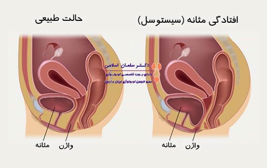 پرولاپس قدامی یا سیستوسل، به عنوان افتادگی مثانه نیز شناخته میشود و زمانی رخ میدهد که بافت حمایتی بین مثانه و دیواره واژن، تضعیف و دچار کشش میشود؛ این موضوع باعث میشود تا مثانه به سمت واژن حالت بیرون زدگی پیدا کند. این وضعیت به عنوان پرولاپس مثانه نیز شناخته میشود. کشیدگی عضلاتی که اندامهای لگنی را پشتیبانی میکنند ممکن است منجر به افتادگی مثانه شود. این نوع کشیدگی عضلانی ممکن است به دلیل زایمان از طریق واژن، یبوست مزمن، سرفه خشن و سخت یا بلند کردن اجسام سنگین رخ دهد. همچنین، افتادگی مثانه ممکن است پس از یائسگی و کاهش سطح استروژن، مشکلاتی ایجاد کند. برای درمان سیستوسل ملایم یا متوسط، روشهای غیرجراحی معمولاً مؤثر هستند. اما در موارد شدیدتر، عمل جراحی برای نگهداری واژن و سایر اندامهای لگنی در موقعیت مناسب ضروری است.
